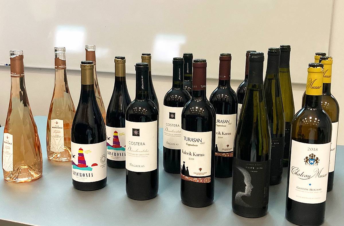Maisteltavana olleet viinit (vasemmalta oikealle):