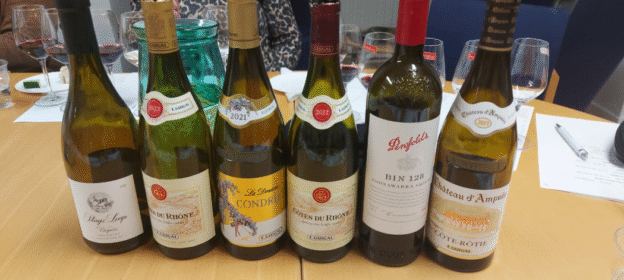 Kaikki viinit arvioitiin hyviksi. Punaisissa voiton vei kuitenkin suvereenisti E. Giugalin Chateau d’Ampuis Cote-Rotie (143,98€), joten ainakin tässä hinta korreloi laatua. Valkoisissa myös E. Giugalin viinit veivät voiton, tosin tässä äänet hajautuivat yllättäen melko tasan perus Cotes-du-Rhonen (18,49€) ja hintavamman Condrieu La Dorianen (114,49€) välille.